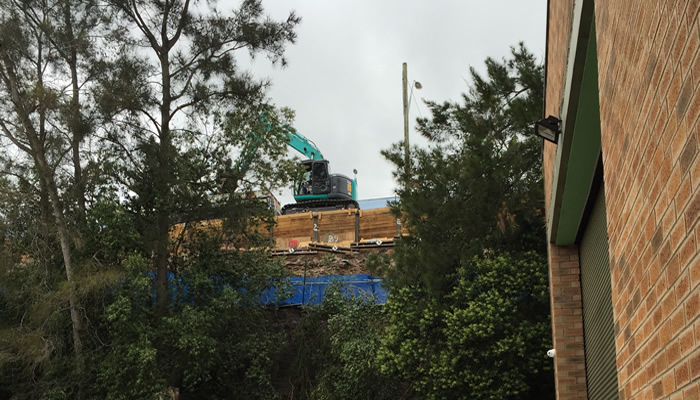 Perfect Engineering came up with an innovative concept, and later, once approved provided the design and calculations for the temporary access shoring platform (piers/sleepers/concrete-slab) adjacent the main road and the cliff face in which the entire works were to be conducted. This temporary shoring was situated on a narrow corridor 3m wide adjacent Victoria Rd with a steep vertical slope of approximately 12m - 15m in depth on the other side of the corridor. Factories were situated at the base of the cliff face approximately 3m away from the base. The length of the entire section along Victoria Rd was 150m. From this shoring platform, all of the subsequent works for the project including excavation, piering concreting etc was achieved successfully with no interruption to traffic on Victoria Rd.