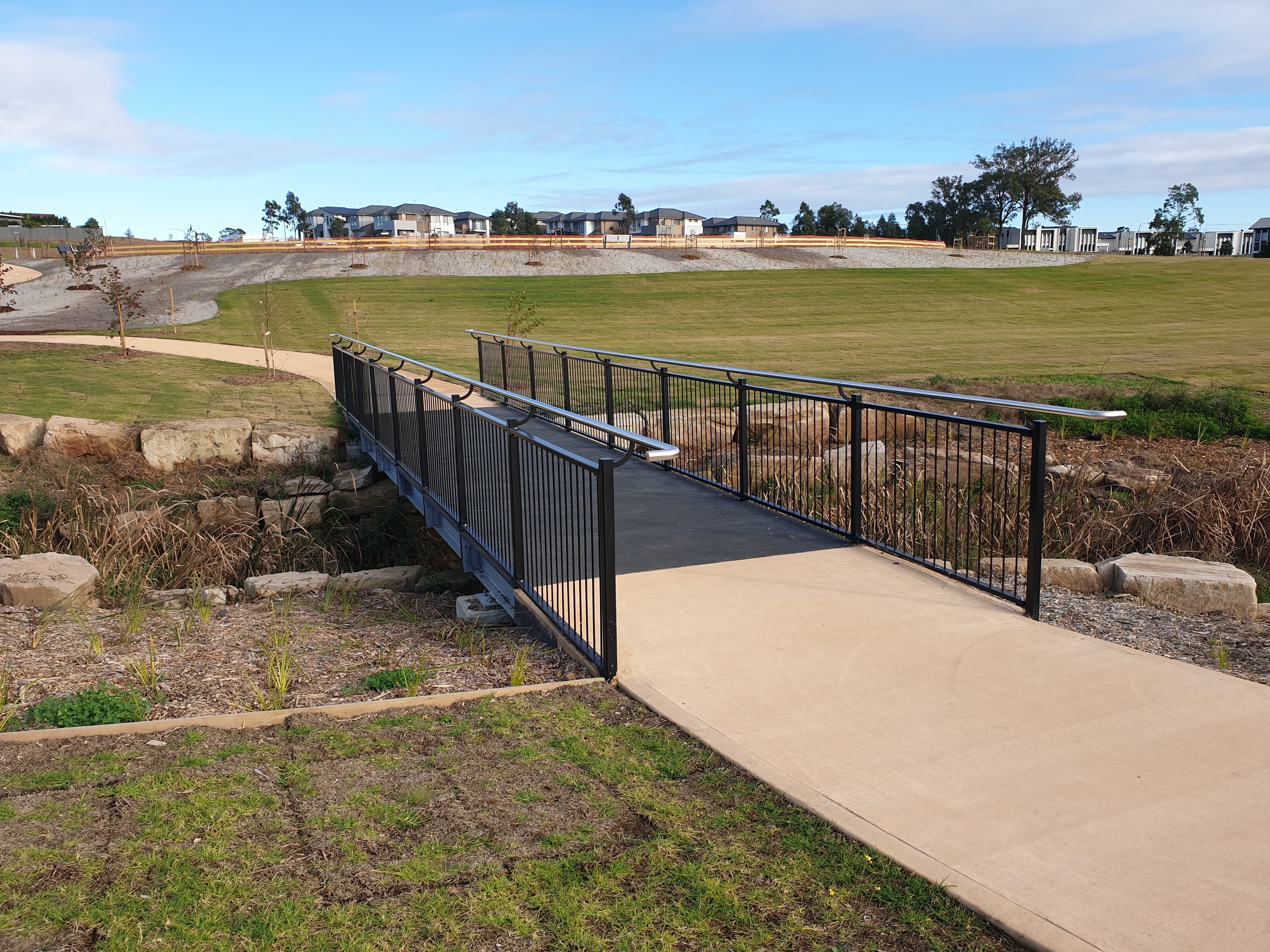 A pedestrian bridge was required as a waterway crossing to connect two areas of the new park.